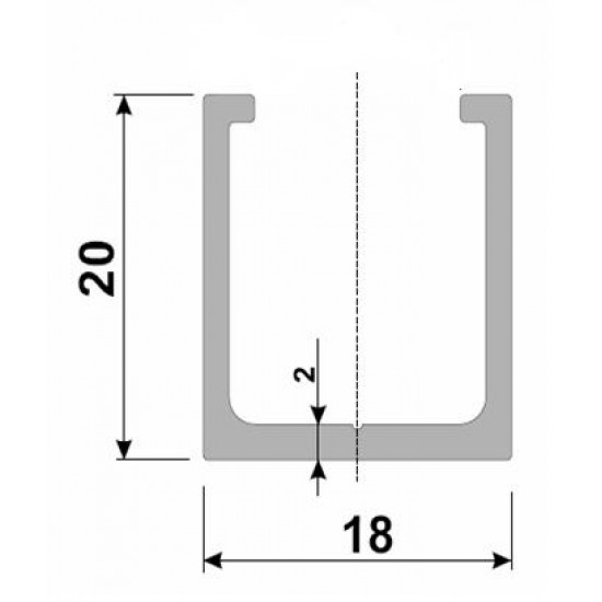 Anodēts alumīnija U – veida profils, 20x18mm, stiklam vai citam pildījumam biezumā, 8;10;12mm, L=5850mm