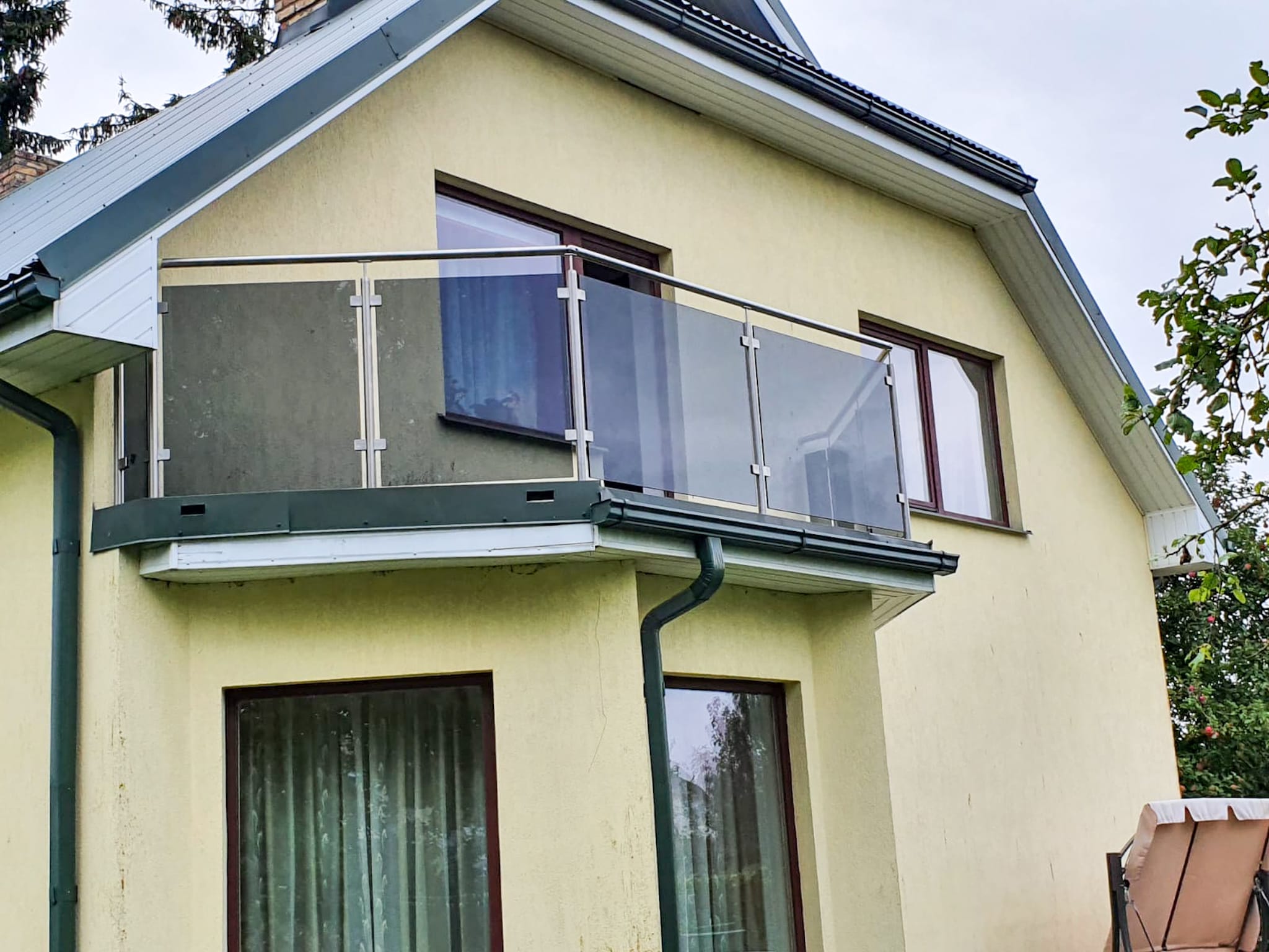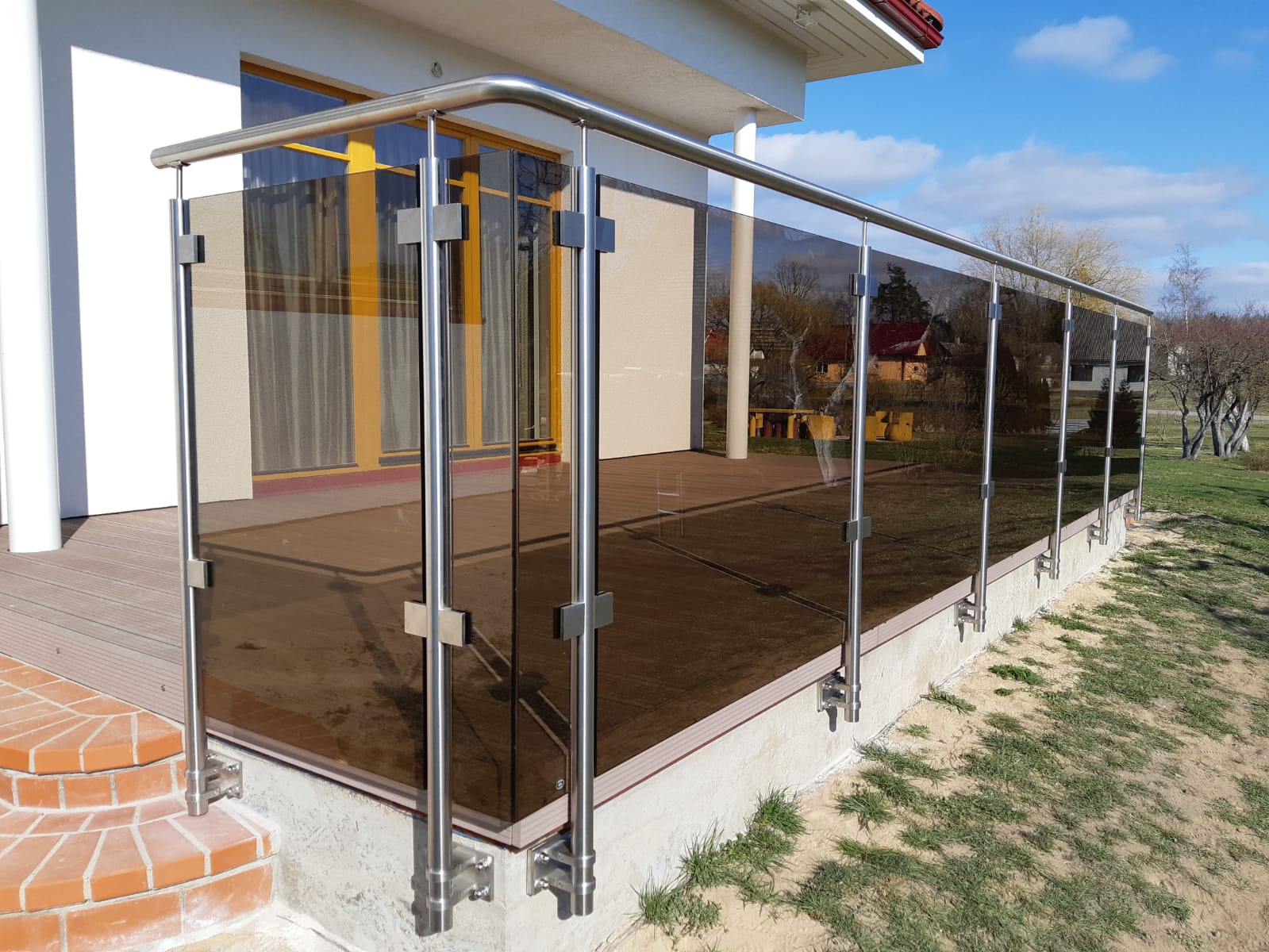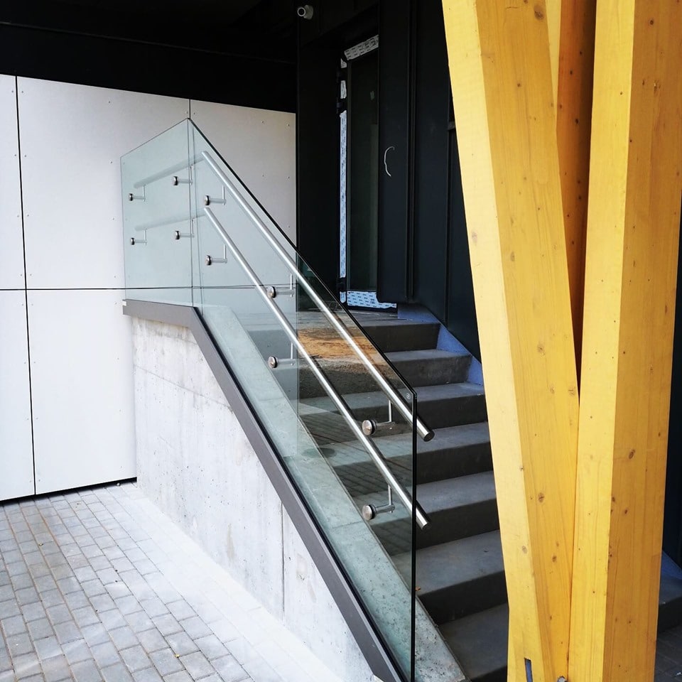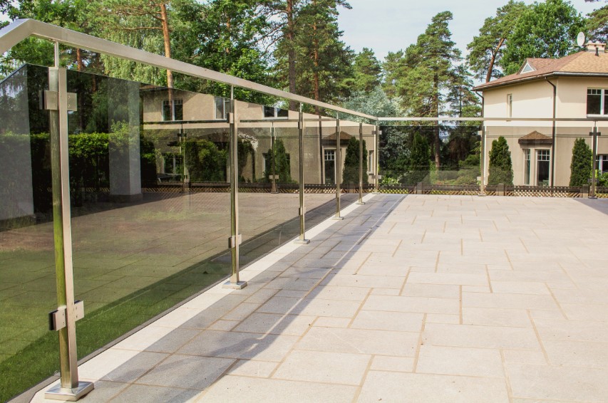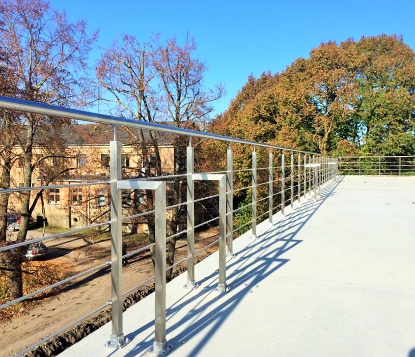 Jumtiņi. Nerūsējošā tērauda un stikla margas.