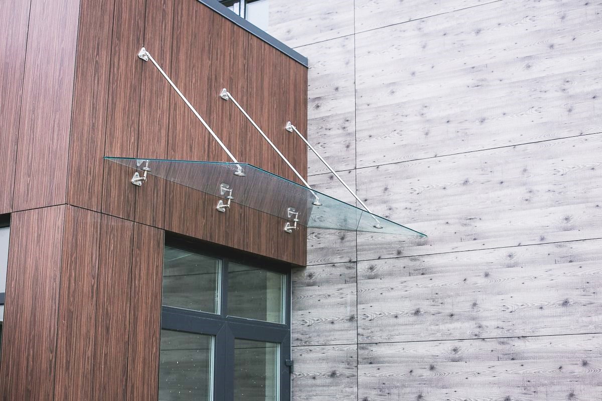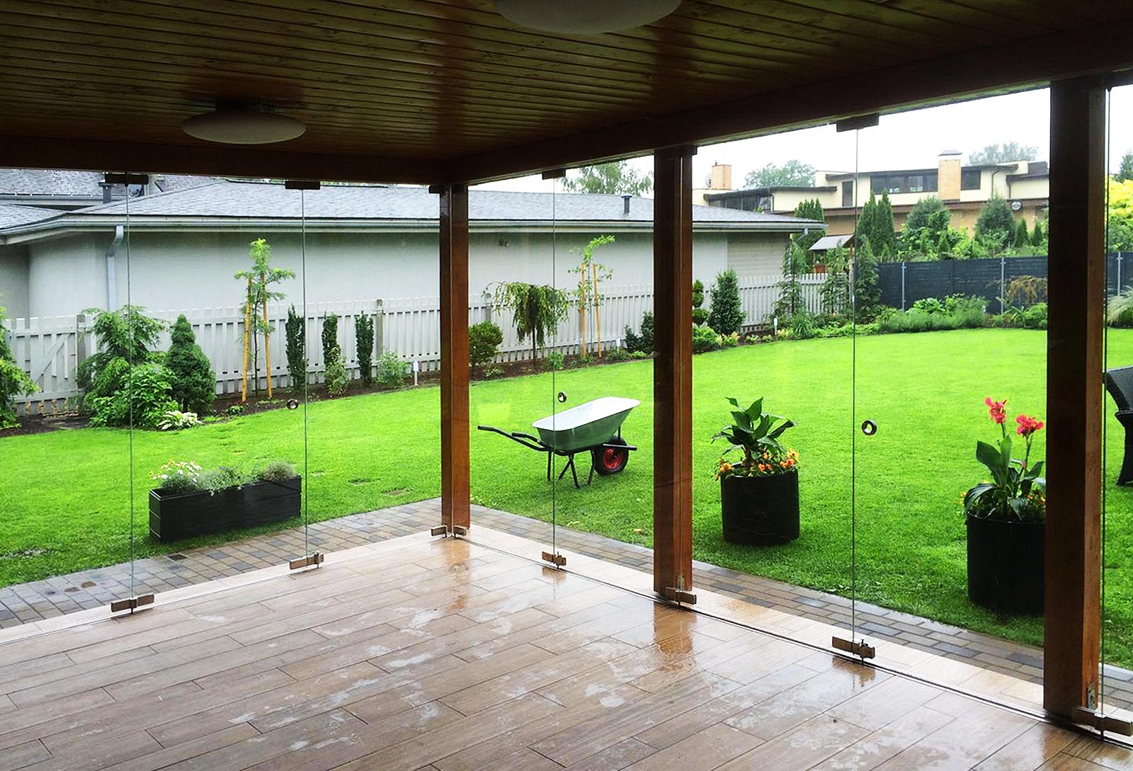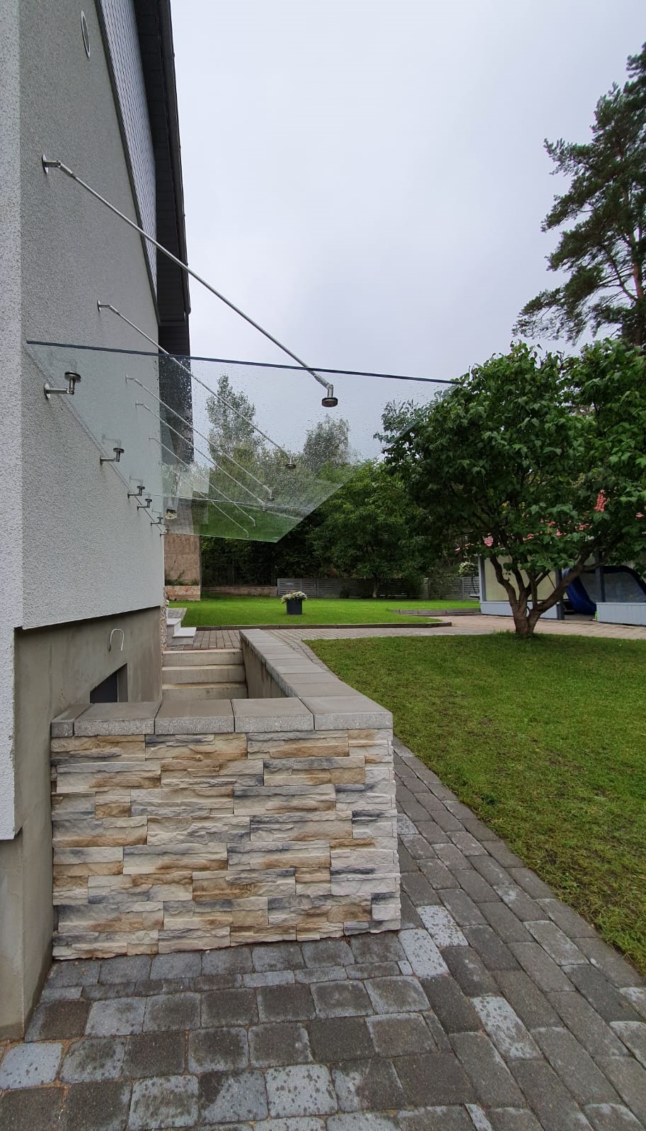 Jumtiņi. Nerūsējošā tērauda un stikla margas.