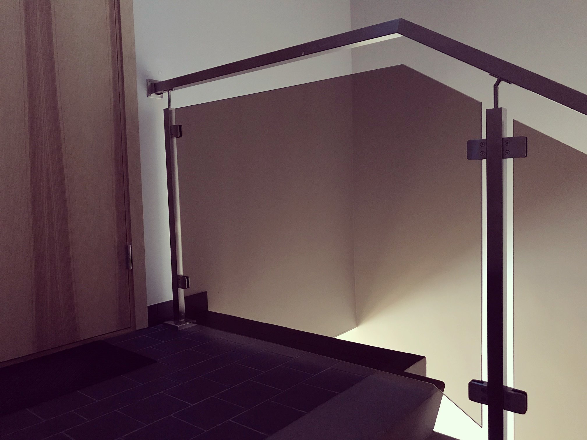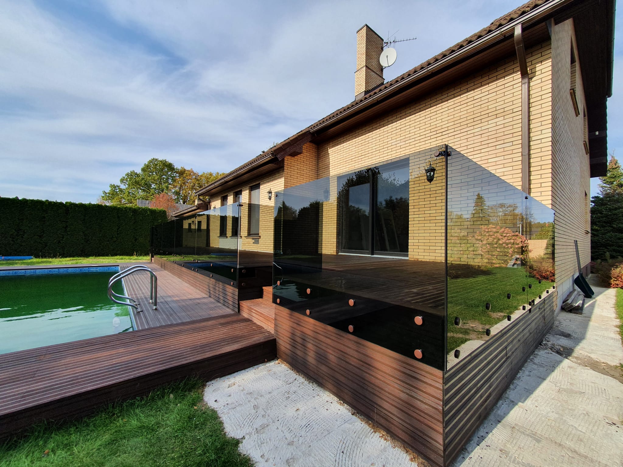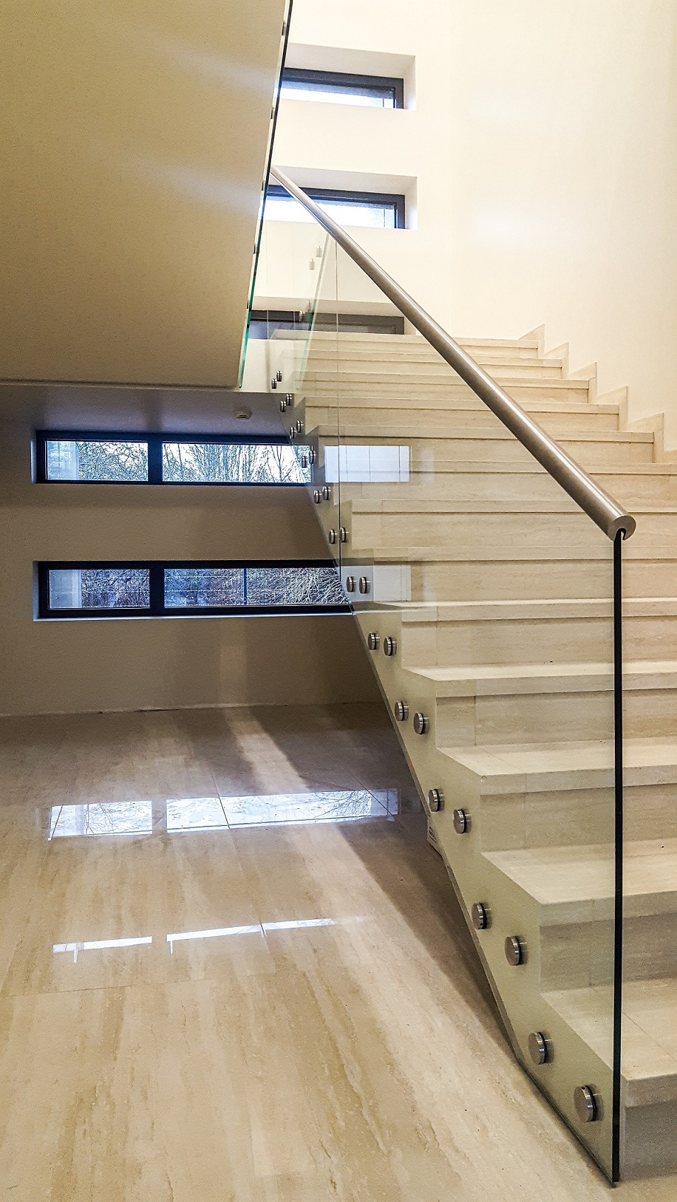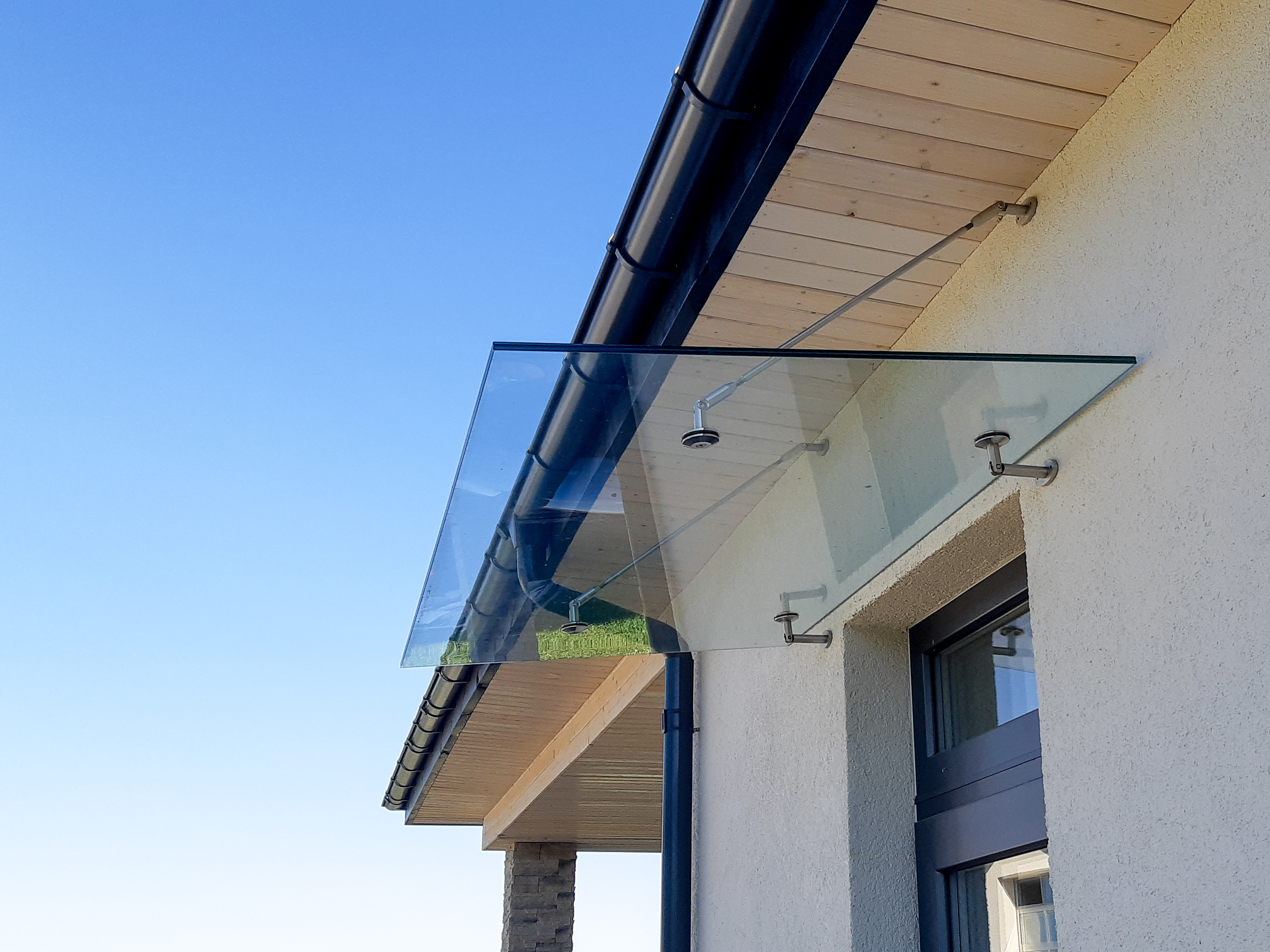Jumtiņi. Nerūsējošā tērauda un stikla margas.