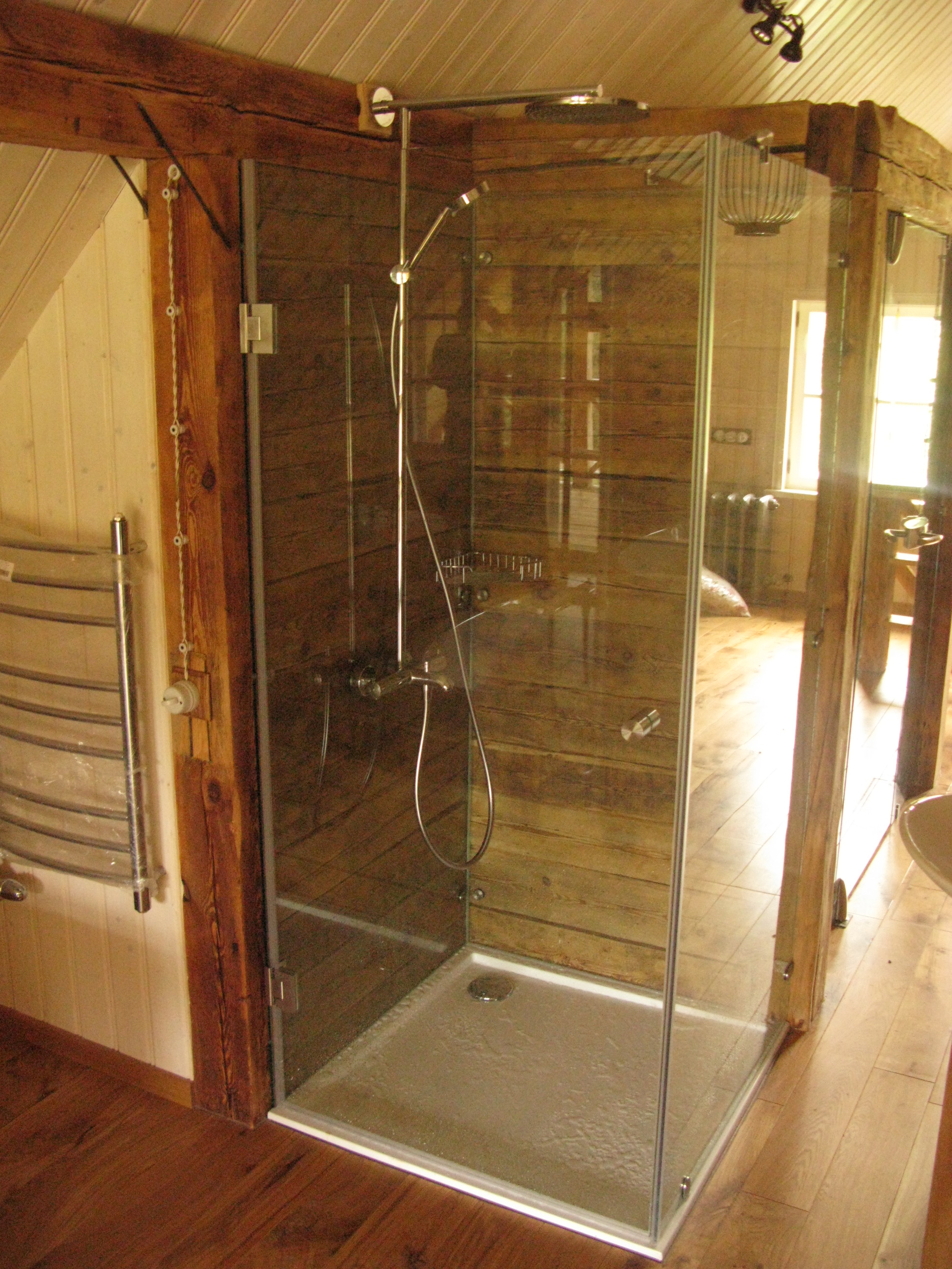 Dušas. Pilnstikla starpsienas.