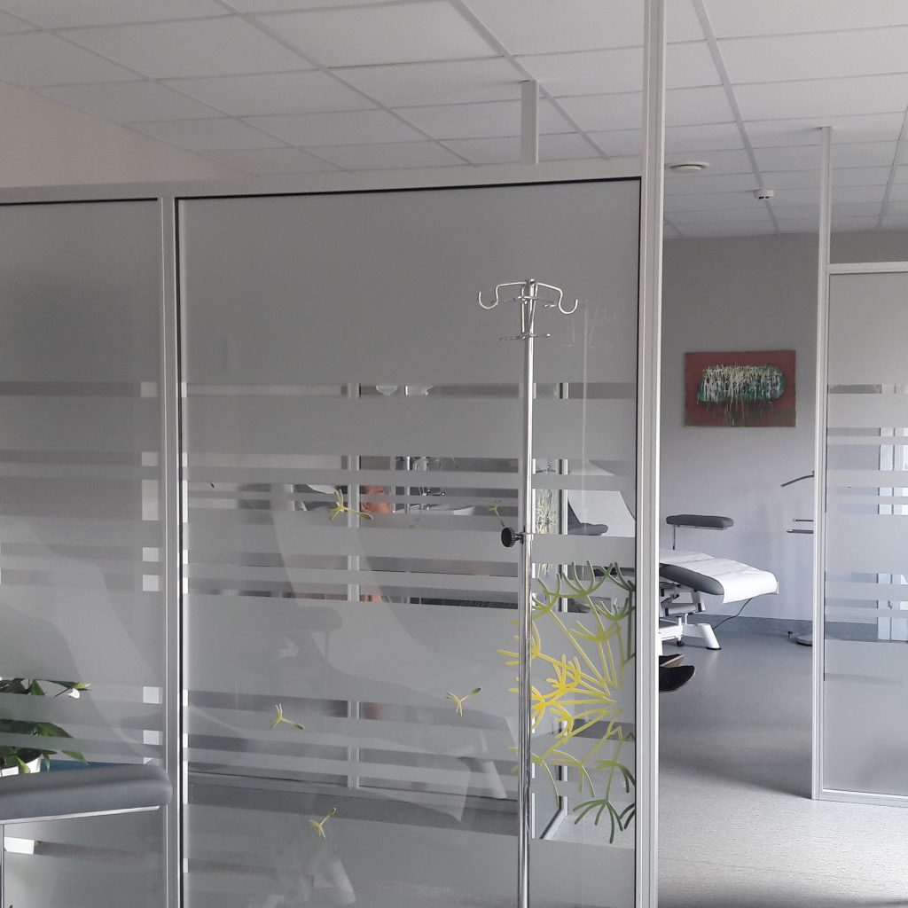 Alumīnija-stikla sistēma, kas paredzēta telpu sadalīšanai.