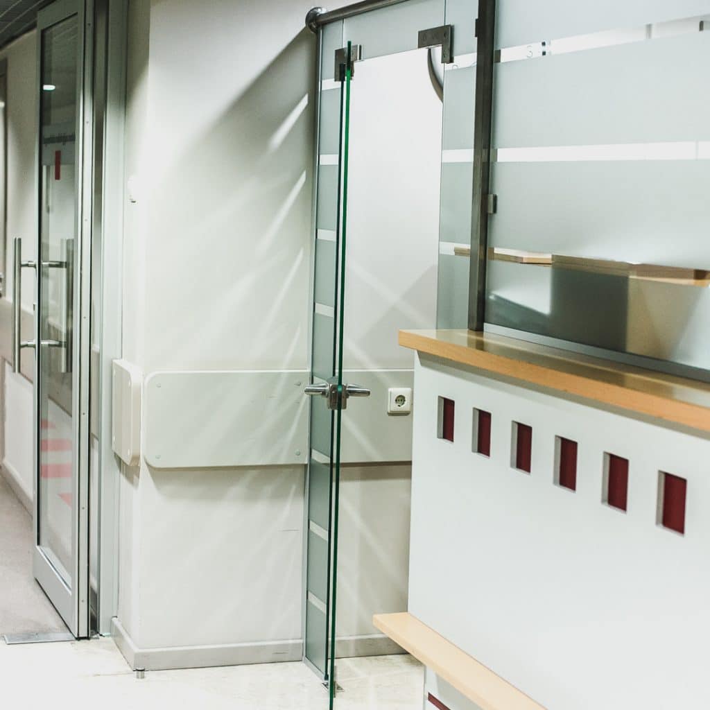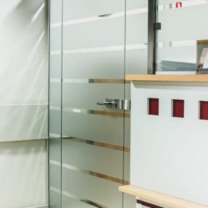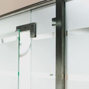 CONA LUX stikla starpsienas ar veramām stikla durvīm.